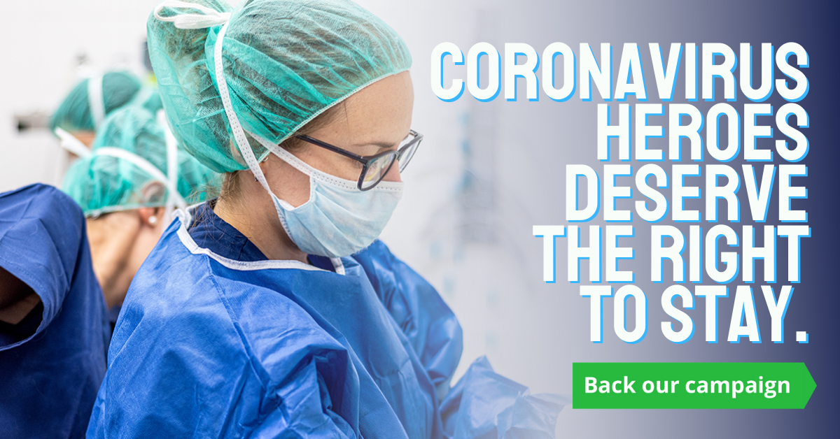 Those who have put their lives at risk for people in our country should be welcome to live here. No one who has fought to save lives in Britain during this emergency should be forced to leave.