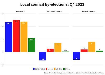 The final quarter of 2023 was a cracking one for our local campaign teams: more than double the net gains of Labour and Greens combined, a big increase in vote share and overtaking the Conservatives in the aggregate vote for the first time in the year.